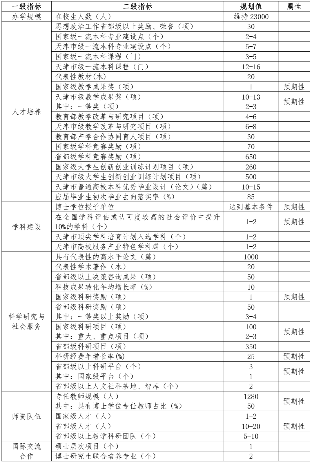 3.全力推进“重点为”战略。加大对重点建设学科的投入力度,集中力量建设若干高水平学科,打造比较优势,提升核心竞争力。以现有7个市级重点学科为依托,大力推进博士学位授予单位立项建设,培育2-3个一级学科博士学位授权点建设学科。以动力工程及工程热物理天津市一流学科为基础,实施顶尖学科培育工程。实施特色学科群提质升级计划,开展服务产业特色学科群建设。以一级学科为单位,按照全国学科评估要求,制定各学科发展规划。加大工商管理、动力工程及工程热物理、应用经济学一级学科建设力度,加强法学、食品科学与工程、马克思主义理论、公共管理一级学科建设,力争在全国学科评估或认可度较高的社会评价中1-2个学科排名提升10%。