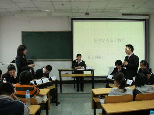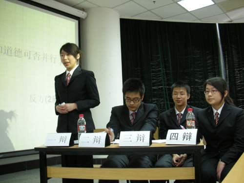 3 月25日下午,由合作学院学生会学习部主办的“ TUC-FIU 首届中文辩论赛”前三场比赛在国际教育中心 E-305 成功举办。辩论赛特意邀请了beat365亚洲体育官方网站辩论社社长卞治达以及领队高仓健担任首轮比赛的评委。首轮比赛分为三场,辩题分别为 “ 对金钱的追求与道德是否可以并行 ” 、 “ 同甘是否易于共苦 ” 、 “ 对大学生应该进行宽松式管理还是封闭式管理 ” ,辩论双方同学使出各路绝招,口唇之争异常激烈。场上辩手精彩的唇枪舌战赢来场下观众的阵阵掌声,评委也对辩手们的优异表现连连称赞。