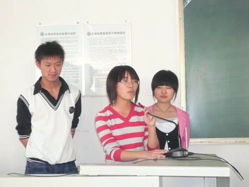 本次活动每个班级用幻灯片的展现他们的成果,侧重点各有不同。其中几个题目对大学生的人生教育意义深刻,得到了所有同学的共鸣。在这个竞争时代,特别是金融危机后的现在,就业问题显然已经成为当代大学生关注的热点。几位新生通过模拟采访人才市场上的应聘者和企业招聘者,了解用人单位的选择倾向性,为在校生的学习提供了更明确的方向。同时几个班级不约而同选择了爱国这个主题,不论是圣火在法国传递过程中所遇到的阻力,还是汶川大地震中中国人的万众一心,众志成城,都给了大家深深的感动。使得同学们更加坚定爱国,报国的信念。青春易逝,只有将青春融入到不断前进的时代中去,才能让我们的青春更加的夺目绚烂。
