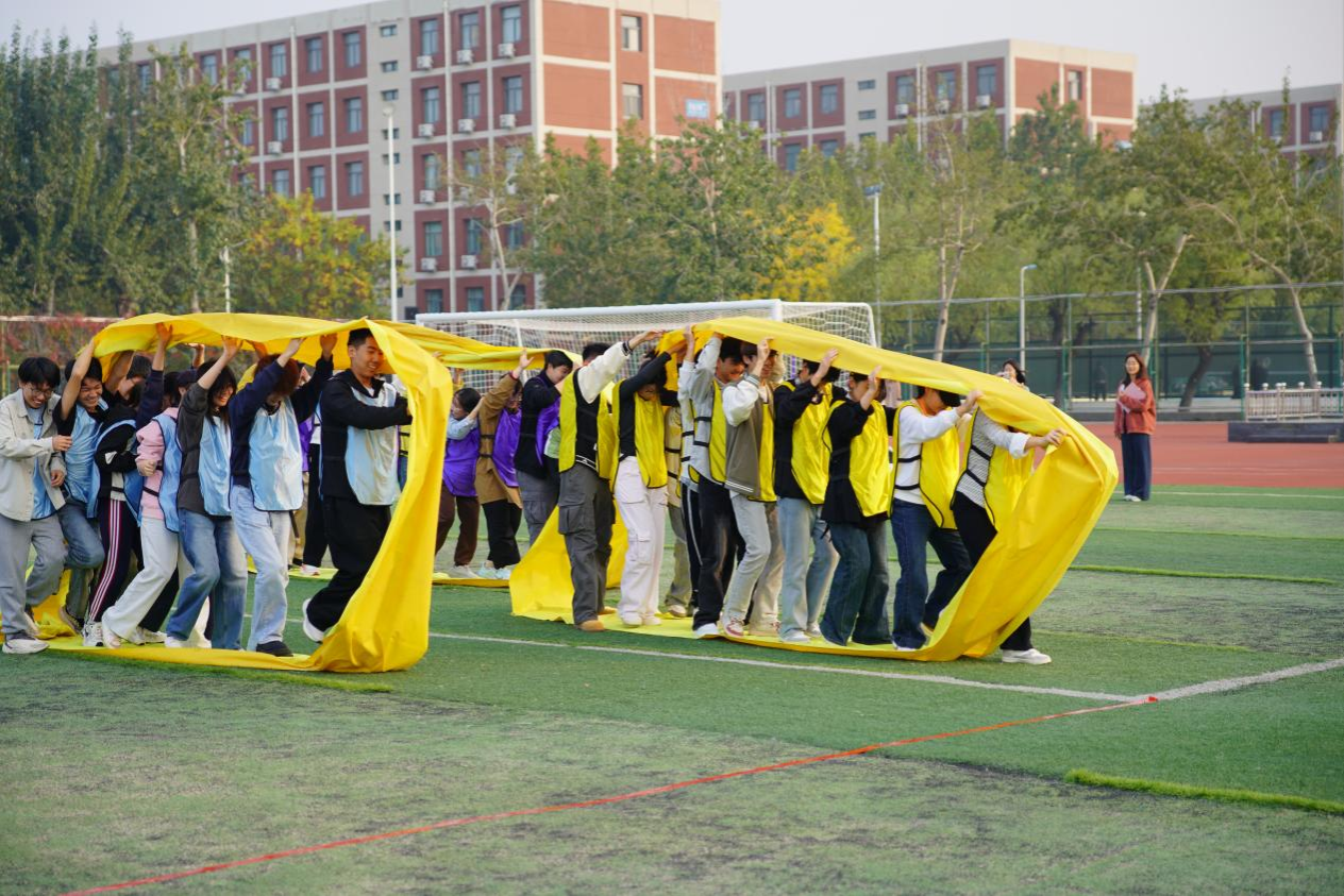 为丰富校园心理健康文化生活,增强学生团队协作意识与心理韧性,10月15日,beat365亚洲体育官方网站党委学工部心理健康教育中心以“心向阳光,拓运同行”为主题,在西区操场开展心理素质拓展活动,帮助学生在趣味互动与协作挑战中凝聚力量、收获成长。