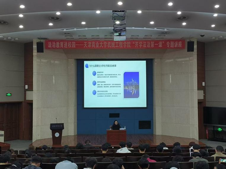 10月15日,学院在图书馆国际报告厅举办“开学法治第一课”专题讲座。本次讲座邀请天津市法律援助中心法律援助科科长董伟担任主讲嘉宾,学院党委书记张莹、副书记王凯出席活动,学院辅导员及2025级新生300余人参加。