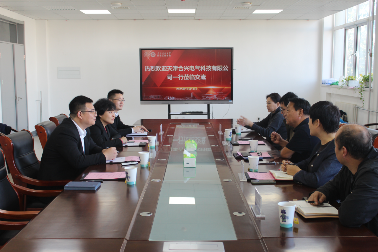 10月14日下午,天津合兴电气科技有限公司总经理姜和发、工程师臧保良、商务经理吴新红、市场经理叶文一行到访机械工程学院开展合作交流。学院党委书记张莹、党委副书记王凯、副院长陈爱强、学工办主任邱春强、辅导员陈勇会见并参加座谈。