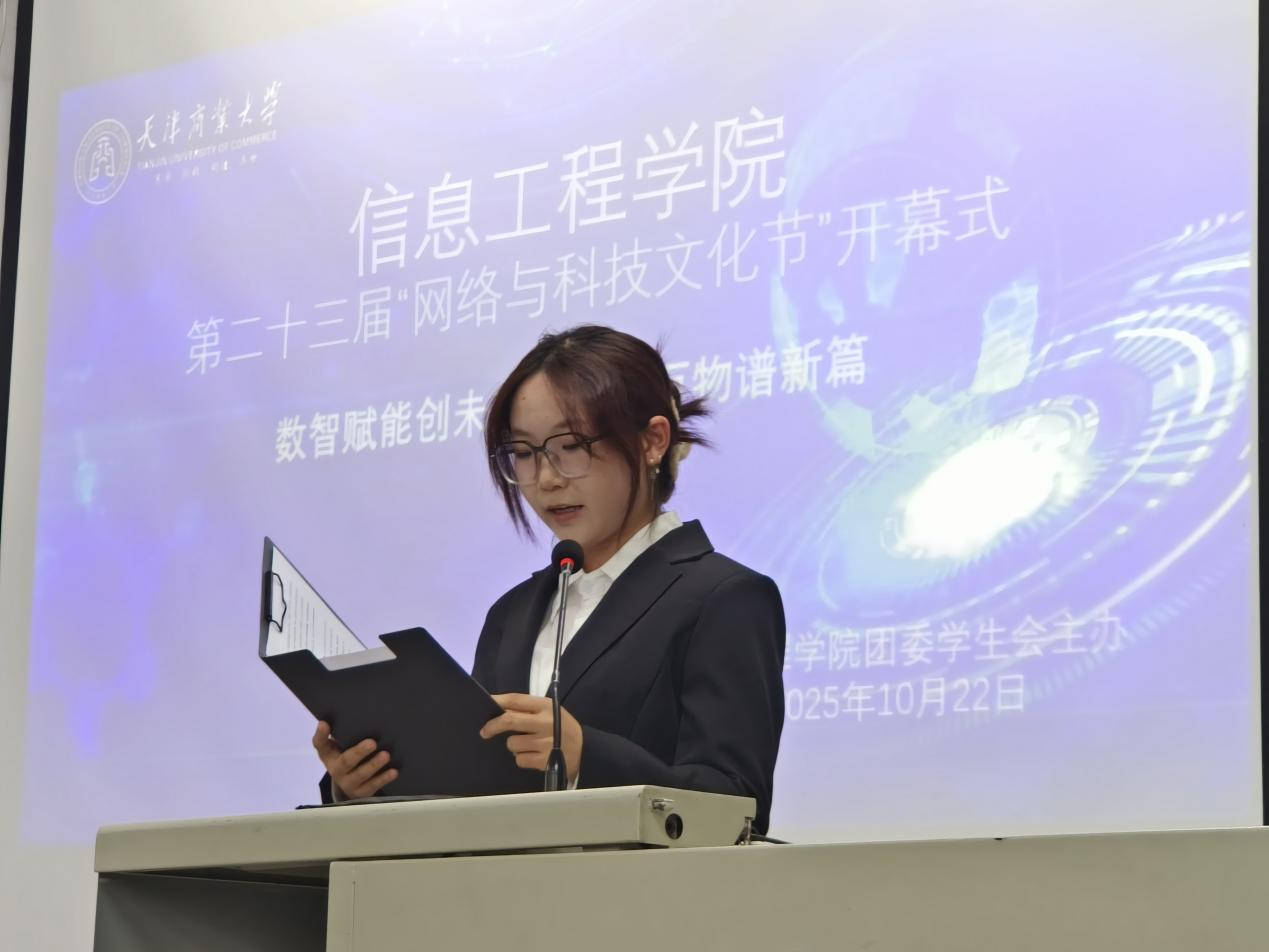 随后,学院团委科技协会主席魏婧同学详细介绍了活动内容。本届“网络与科技文化节”共设三大模块:“数字科技,创新引领”科技+系列活动、“驾驭数字,启迪智慧”文化+系列活动、“数字领航,谱写新篇”学风+系列活动。通过丰富多元的活动,旨在帮助学生拓宽专业视野、拓展创新思路,进一步提升专业技能与综合素质,为未来就业与发展夯实基础。