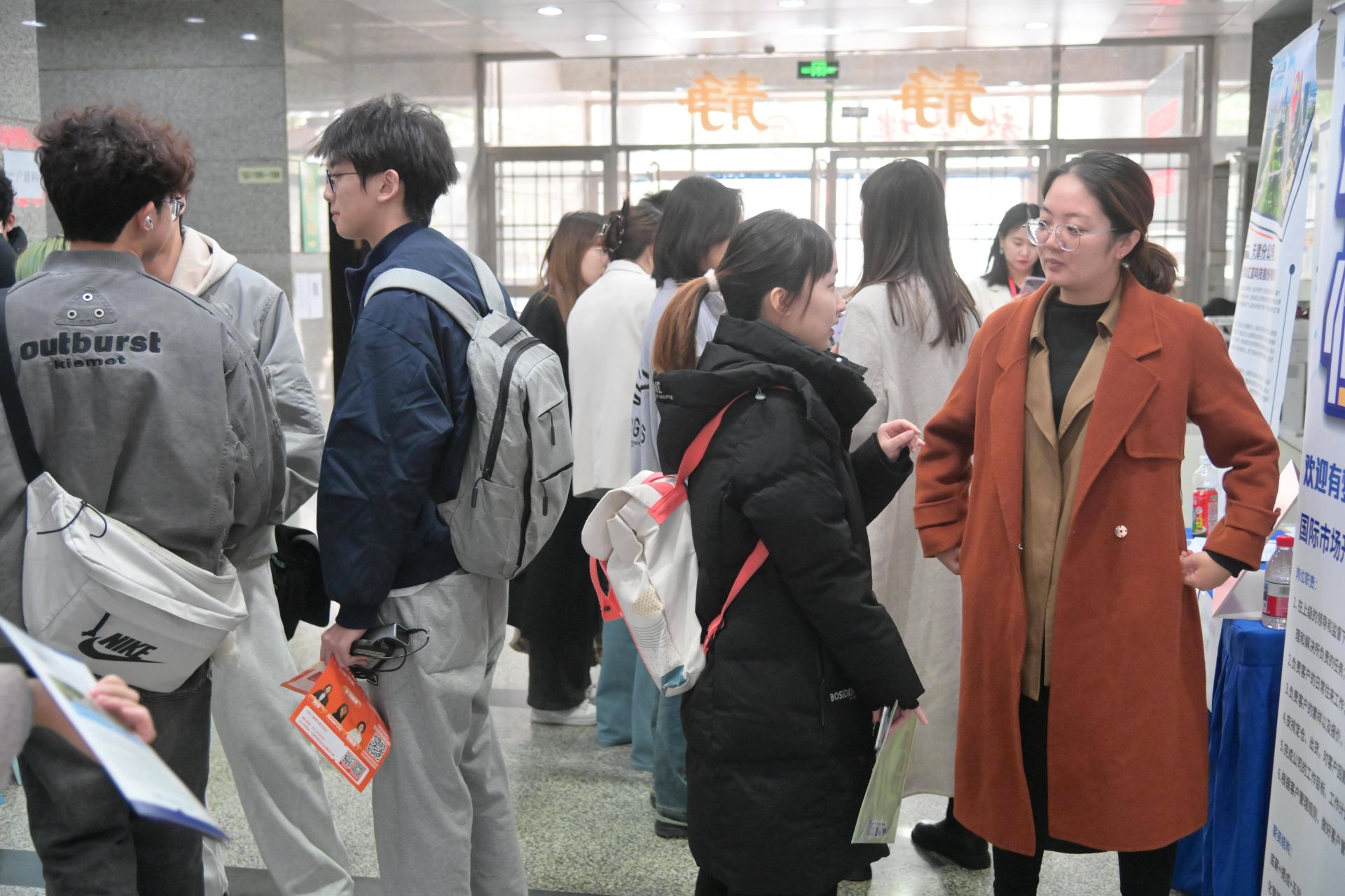 为充分挖掘优秀校友资源,拓宽毕业生就业渠道,搭建校友企业与毕业生之间的精准对接平台,10月24日下午,学生处在七号教学楼一楼大厅成功举办第二届“天商薪火 职路相传”校友企业(秋季)专场招聘会。学生处、经济学院、外国语学院、生物技术与食品科学学院、机械工程学院相关负责老师,2026届毕业生等共700余人参加。