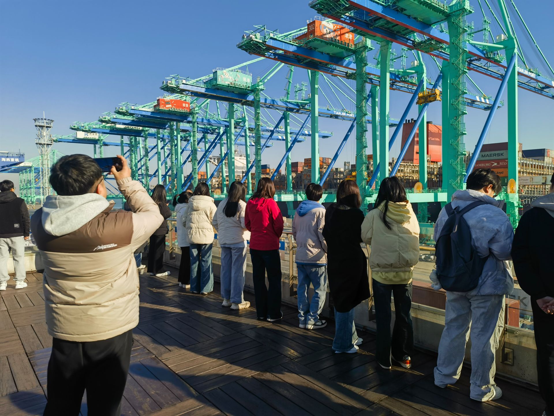在天津港智慧码头,无人集卡有序穿梭,远程操控的桥吊精准作业,全球首个“智慧零碳”码头的创新实践让师生们深感震撼。新闻中的智慧物流展现在眼前,让师生们对滨城的产业发展水平有了全新认识。