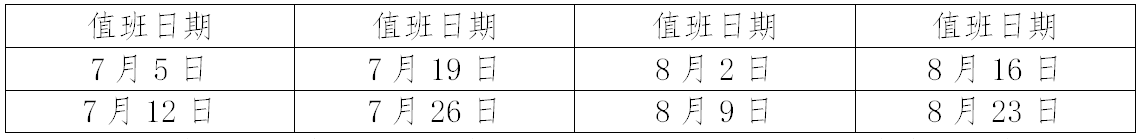 一、7月3日至8月29日期间,每周周三上午9:00至12:00安排专人值班,为校内外师生、校友及相关社会单位提供档案查询利用服务。8月30日起恢复正常上班时间。具体日期如下: