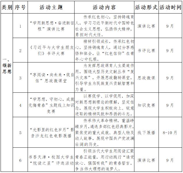 本次阅读推广系列活动精心策划“颂新思想·享新时代·展新自信·迎新学期”四大板块20余场,聚焦打造校园多维度阅读服务体系,创建规范化、创新化、精品化的平台,以启迪师生思路,构筑师生信任,培育时代新风貌。