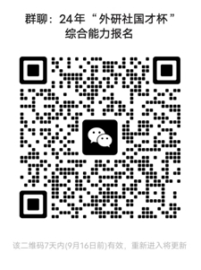 定题演讲:选手以大赛公布的定题演讲题目“The Chinese Dragon Is Good”为依据,自拟小标题录制3分钟英语脱稿演讲视频,并在规定时间内通过超星学习通进行提交,详情请扫码进群并关注群通知(定题演讲题目介绍请见大赛官网https://ucc.fltrp.com/c/2024-03-26/522786.shtml)。