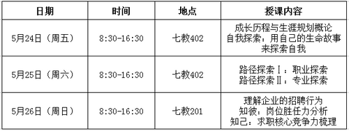 为在学生群体中普及职业生涯规划知识、增强职业生涯规划意识,引导广大学生合理规划大学学习与生活,提高就业技能与实践能力,招生与就业处组织开展大学生职业生涯规划课程,具体安排如下: