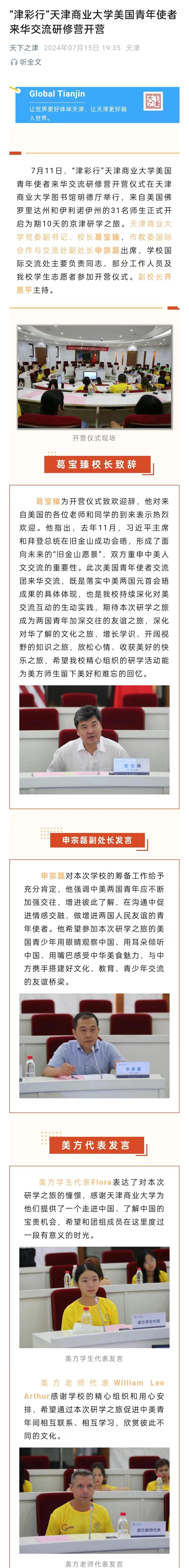 日前,《天津日报》、都市报道60分、你好天津视频号、天下之津微信公众号、《天津教育报》头条号等媒体报道学校举办美国青年使者来华交流研修营。