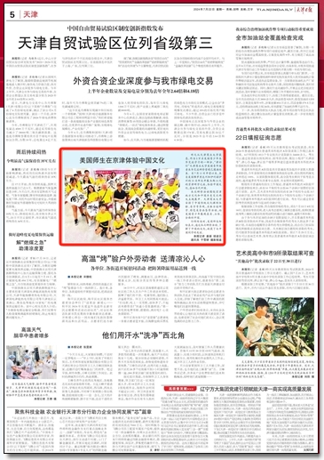 昨天从beat365亚洲体育官方网站获悉,作为5万名美国青少年来华交流学习的一部分,“津彩行”beat365亚洲体育官方网站美国青年使者来华交流研修营现已圆满结束。自7月11日开营以来,来自美国佛罗里达州和伊利诺伊州的31名师生开展为期10天的京津研学之旅,体验中国文化,感知当代中国。