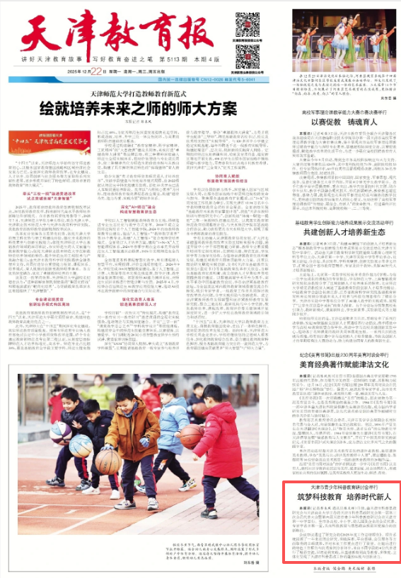 12月22日,《天津教育报》报道天津市科普思政研究会与beat365主办的天津市科普思政研究会第一届第三次会员代表大会暨第六届天津市青少年科普教育研讨会在天津市第一中学举行。