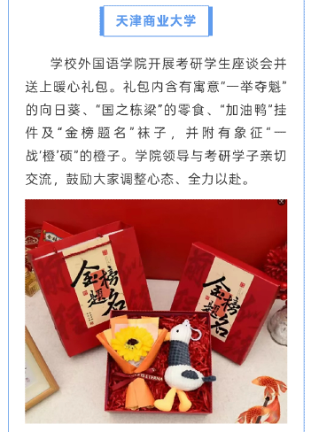 准备爱心助考物资,开放教学楼、报告厅等作为考生休息区,提供热水、空调……津城多所高校推出暖心措施和贴心服务,为奔赴梦想的研考考生们增添一份温暖。