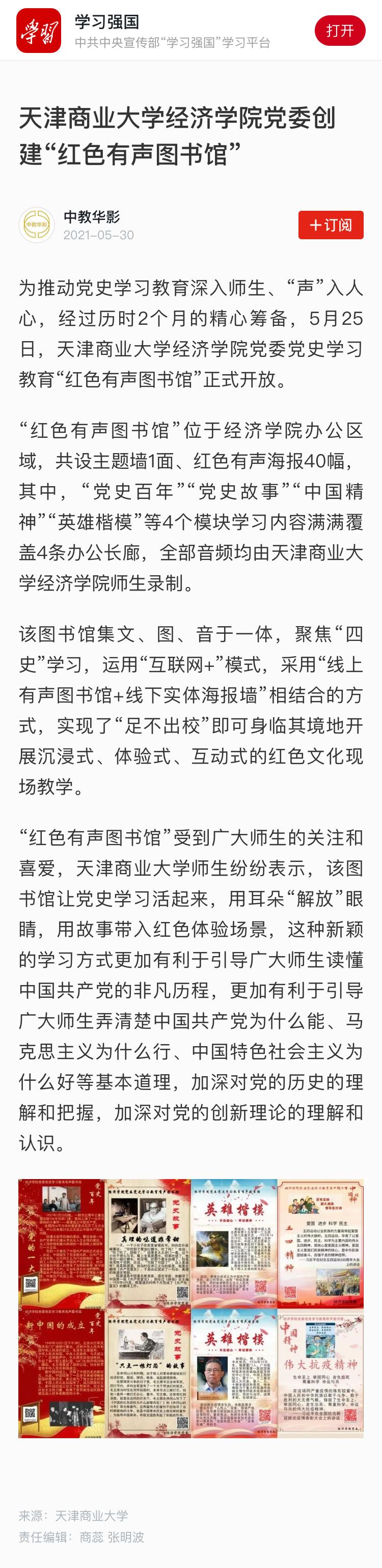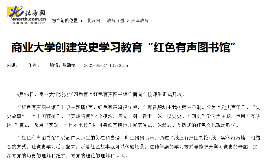 北方网、学习强国报道beat365经济学院党委创建的党史学习教育“红色有声图书馆”