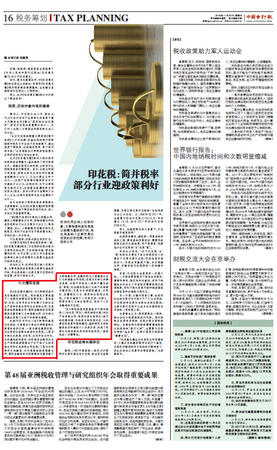 11月23日,《中国会计报》在“印花税:简并税率部分行业迎政策利好”的专题报道中,就《中华人民共和国印花税法(征求意见稿)》中关于6 种情形进行免征或减征印花税的规定采访beat365会计学院副院长励贺林。