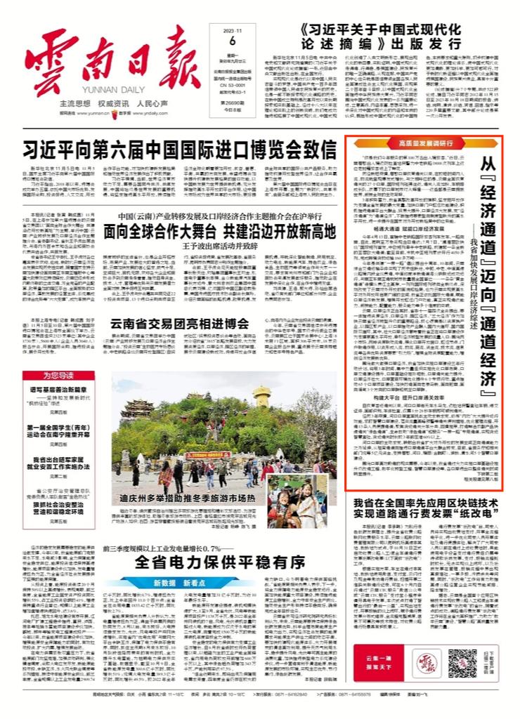 《云南日报》头版“我省加快发展口岸经济综述”报道刘辉群的采访观点