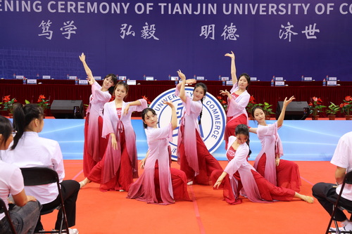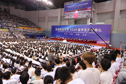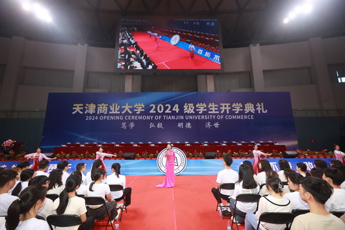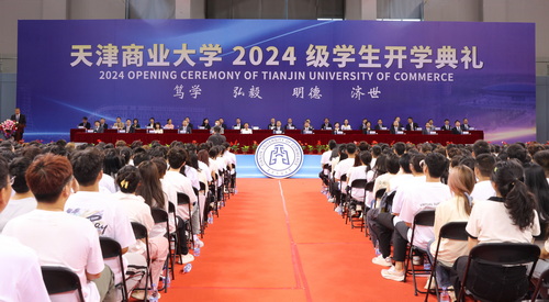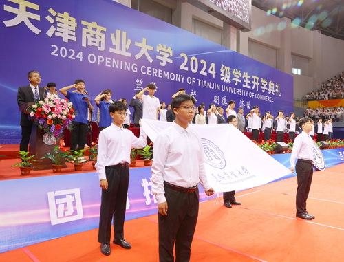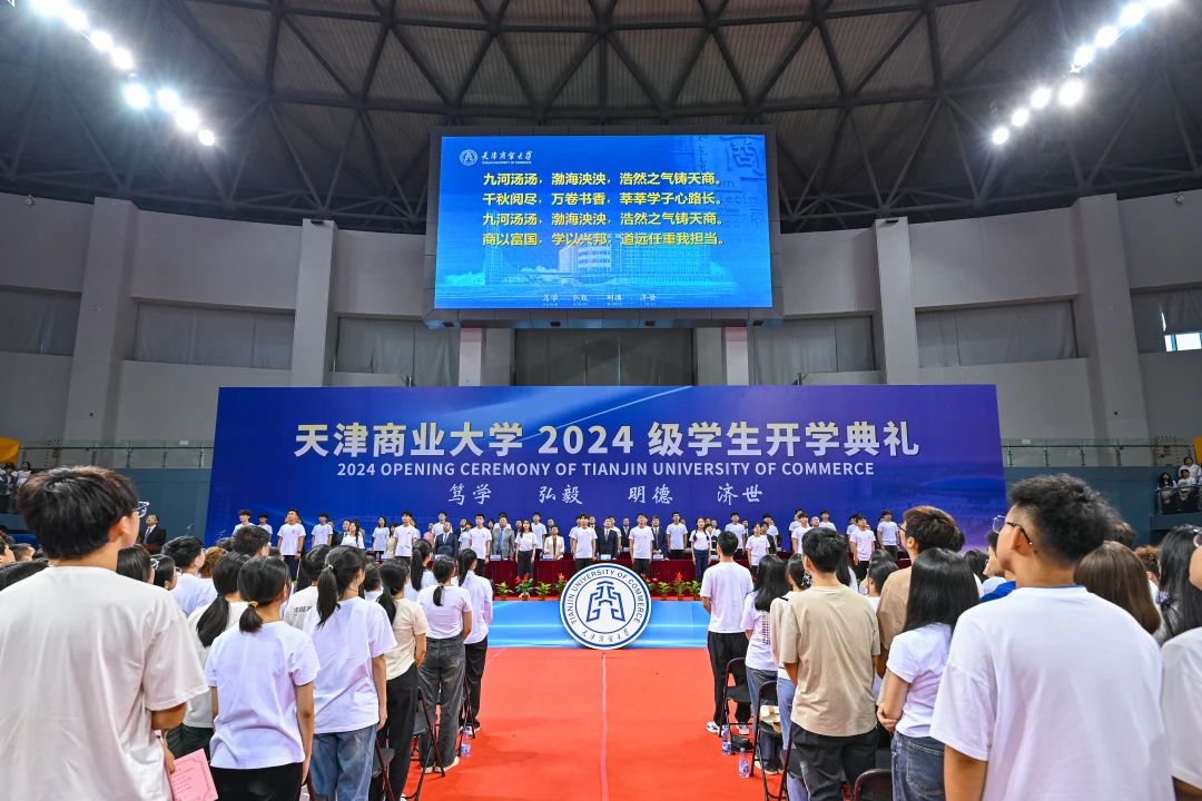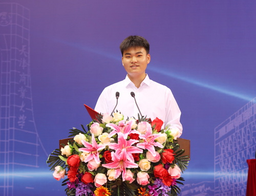 理学院2024级本科生雷江浩和法学院2024级硕士研究生冯肃雅作为新生代表发言,共同分享了自己与天商的“不解之缘”,表示将牢记“笃学 弘毅 明德 济世”的校训精神,努力成长为一名有理想、敢担当、能吃苦、肯奋斗的新时代青年。