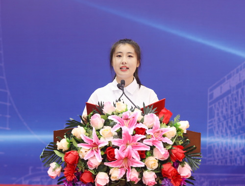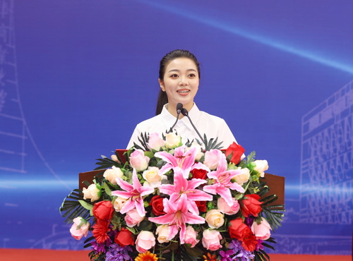 生物技术与食品科学学院2021级本科生李卓玲作为在校生代表发言,表达了作为一名“天商人”的喜悦与自豪,鼓励新生们要坚定信念、锐意创新、勇敢追梦,书写无愧于时代的青春华章。