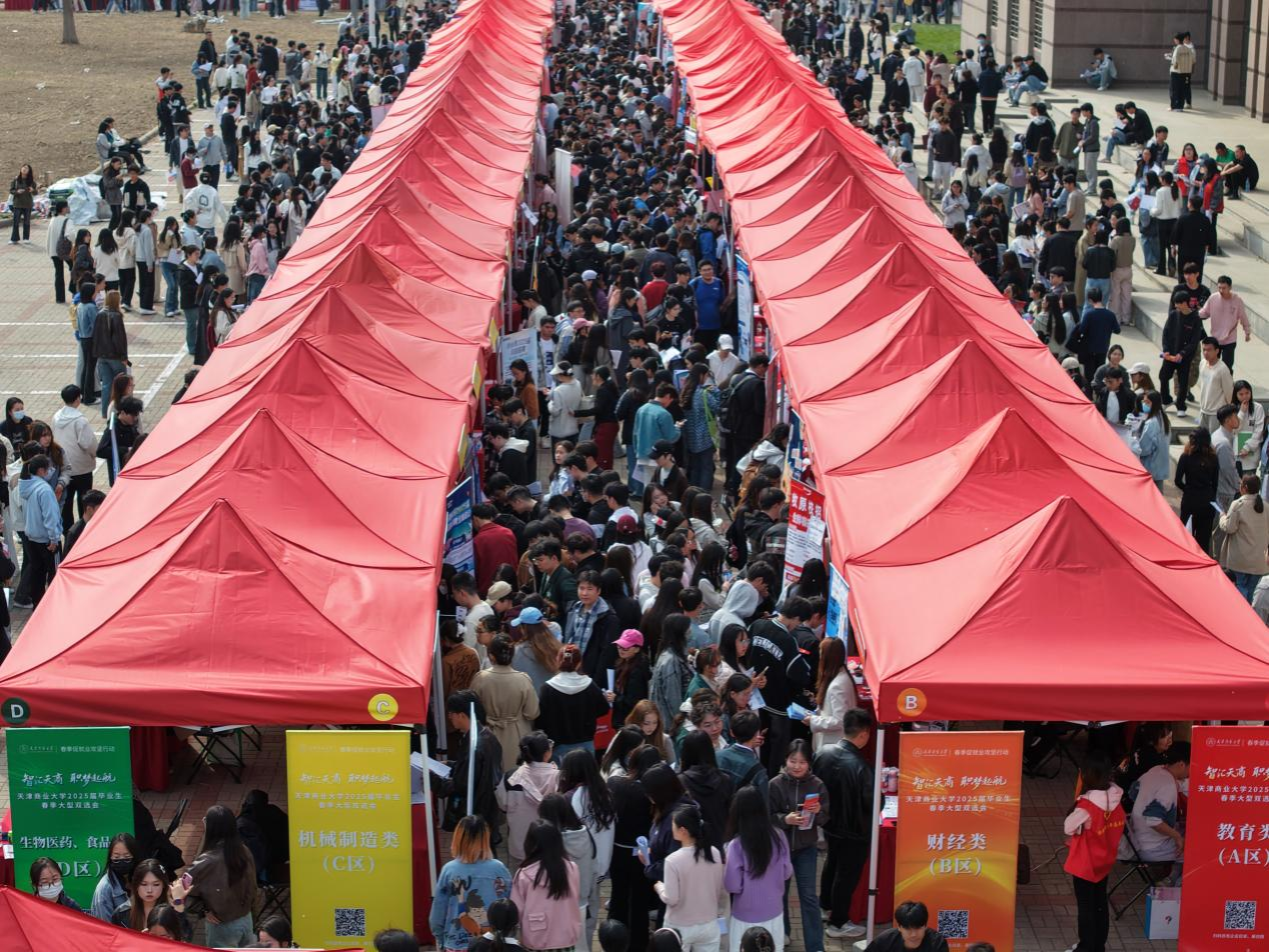现场气氛热烈、秩序井然。此次双选会共吸引179家用人单位参会,提供招聘岗位3000多个。本校参会学生3000余人,来自天津工业大学、天津职业技术师范大学、天津职业大学等市属兄弟高校的200余名学生也参加了本场双选会,现场投递简历1.1万余份。