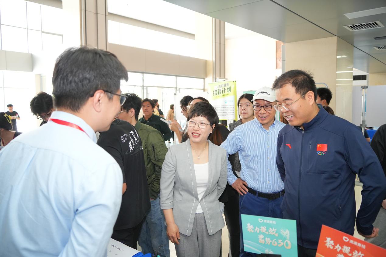 陈冠益、王立云、崔强深入招聘会现场,每到一处展位驻足交流,向校友们致以母校的诚挚问候,特别点赞校友企业反哺学校就业工作的“双向奔赴”,希望校企之间不断加深沟通交流,建立紧密稳固的合作关系,在科学研究、成果转化、人才培养等领域开展全方位、多层次、高质量合作。同时,还与毕业生亲切交谈,鼓励他们抢抓春季求职黄金期,紧盯校友企业招聘机会,主动求职、及早就业,以校友们为榜样,早日成长为行业骨干。