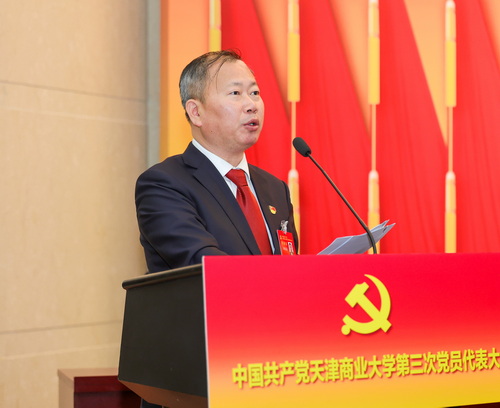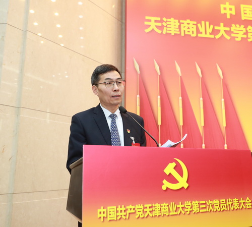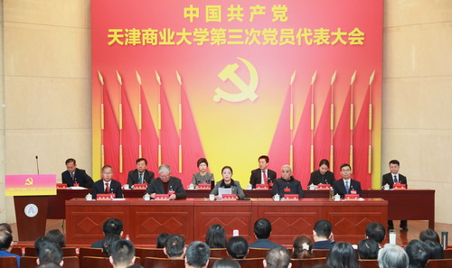1月10日上午,中国共产党beat365亚洲体育官方网站第三次党员代表大会开幕会在图书馆国际报告厅隆重举行。大会的主题是:高举习近平新时代中国特色社会主义思想伟大旗帜,深入学习贯彻习近平总书记关于教育的重要论述,贯彻落实全国和全市教育大会精神,坚持和加强党的全面领导,全面贯彻党的教育方针,落实立德树人根本任务,深化综合改革,强化办学特色,自信自强、凝心聚力、奋发进取,高质量推进特色鲜明高水平商业大学建设。