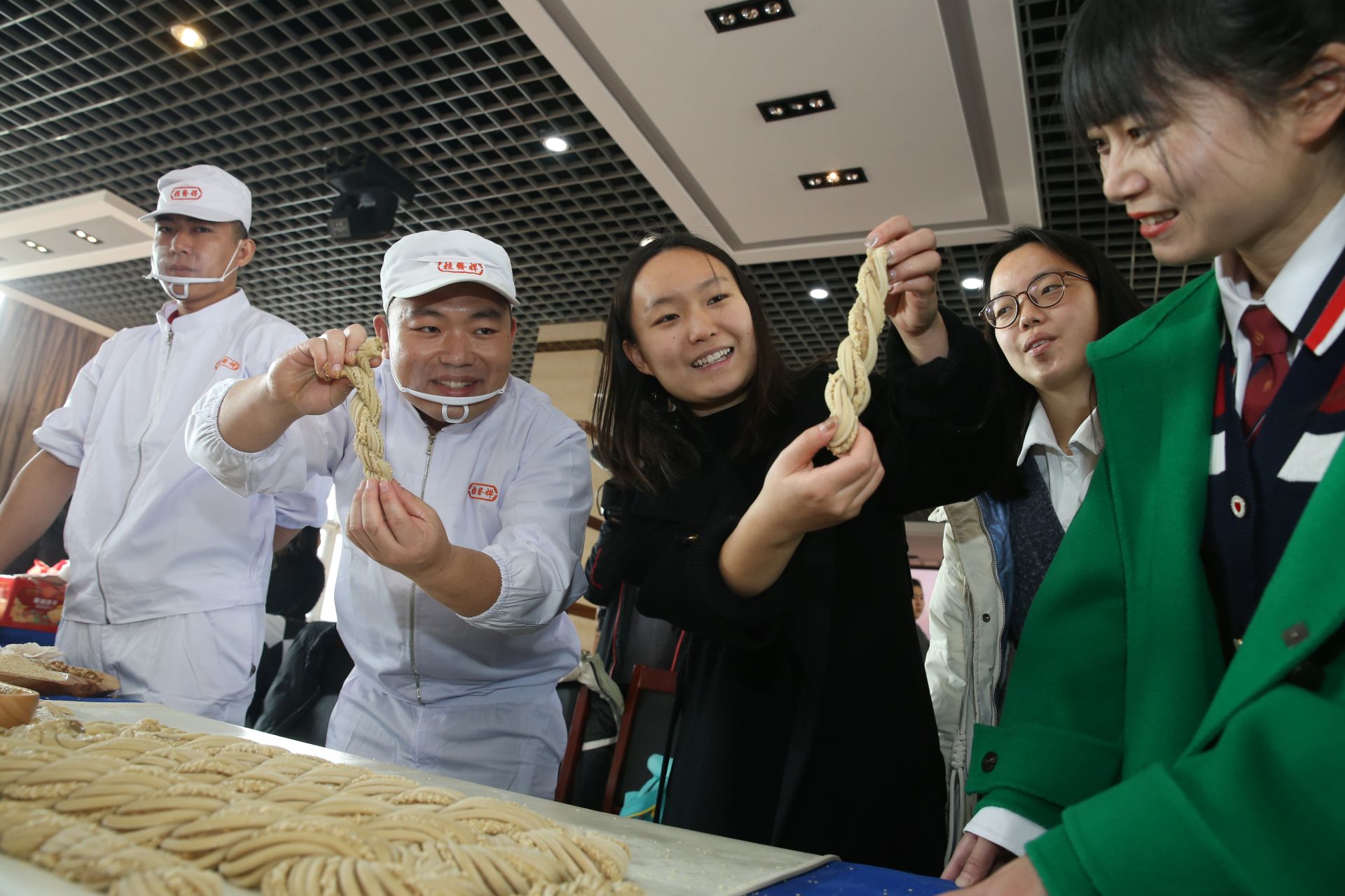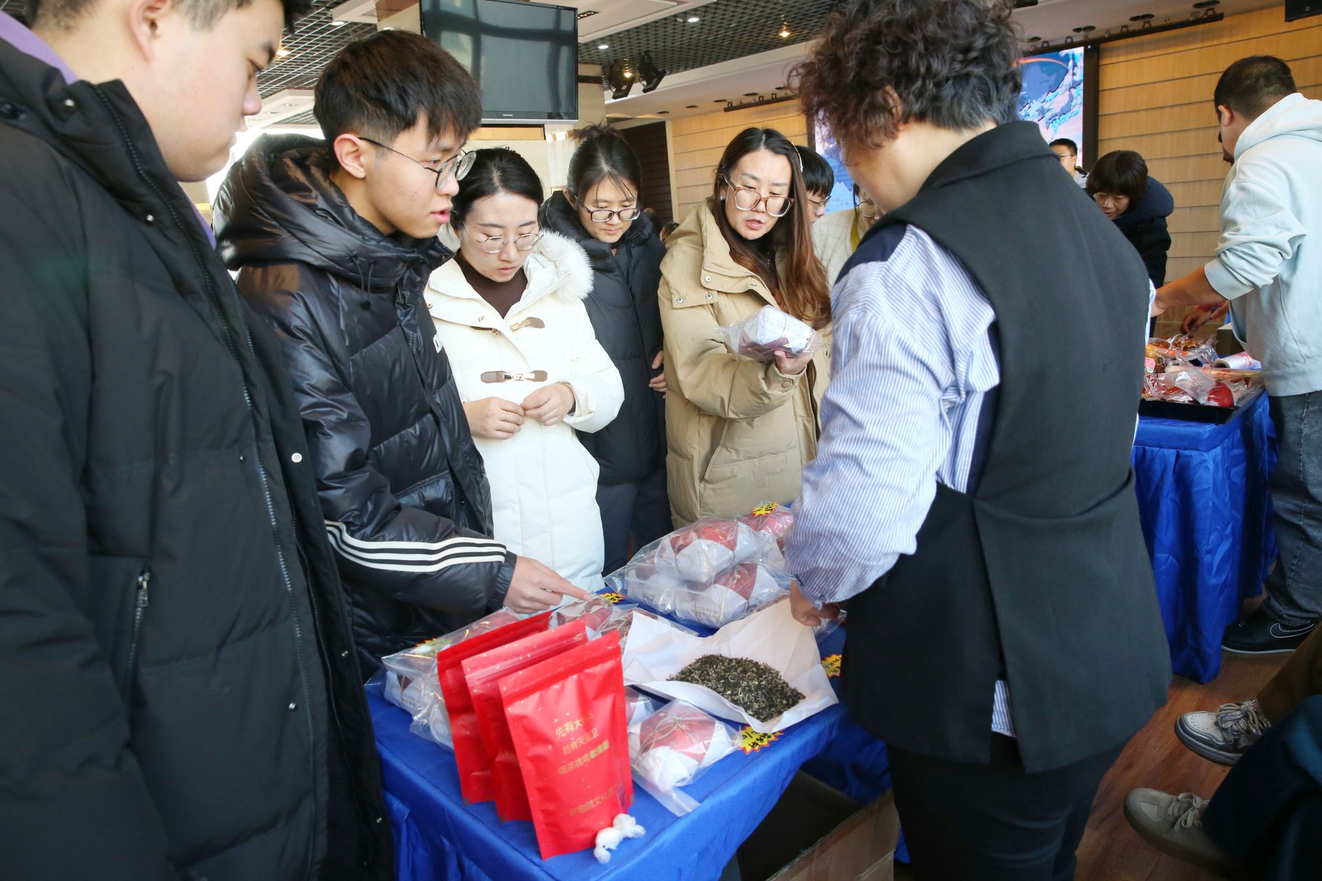 桂发祥十八街麻花 、桂顺斋糕点、祥禾饽饽铺、老津卫茉莉花茶、迎宾火腿……12月25日,“带老字号回家过年”老字号嘉年华专场活动在工会310会议室启动。校党委书记张亚,校领导陈冠益、王立云、崔强、齐恩平来到现场与参加活动的企业、学校师生互动交流。