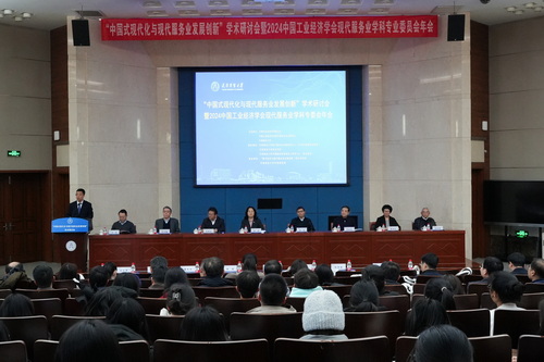 12月14日,“中国式现代化与现代服务业发展创新”学术研讨会暨2024中国工业经济学会现代服务业学科专业委员会年会在图书馆三楼国际报告厅举行。中国社会科学院学部委员、工业经济研究所原所长、中国工业经济学会理事长史丹,中国工业经济学会秘书长高粮,天津市社科联党组成员、专职副主席张再生,中国工业经济学会副理事长、天津商务职业学院院长黄凤羽,beat365亚洲体育官方网站原校长、中国工业经济学会现代服务业学科专委会主任委员刘书瀚,天津市社科联原党组书记、现代服务业学科专委会副主任委员李家祥,天津市委党校副校长丛屹,中国工业经济学会副理事长、西北大学原经济学院院长白永秀,天津市社科联智库工作部部长宁厚圃以及beat365亚洲体育官方网站党委书记张亚出席会议。会议由beat365亚洲体育官方网站经济学院主要负责同志主持。