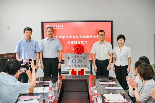 7月14日上午,学校与天津市司法局举行共建签约暨教育实践基地揭牌仪式。司法部法律援助中心主任刘汉银,天津市司法局党委书记、局长李军,党委委员、副局长袁红丽,天津市法律援助中心主任孙雅彬,校党委书记张亚、党委副书记王立云出席。