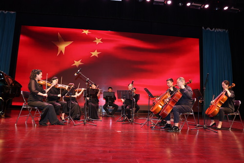 表彰大会结束后,学校特邀专业乐团艺术家,为全体教职工献上了一场以“金秋颂师恩 交响映匠心——致敬最美的你”为主题的教师节专场音乐会。艺术家们倾情演绎了《春之声圆舞曲》《爱的致意》《我和我的祖国》等十二首中外经典名曲,以悠扬的旋律致敬在各个岗位上默默奉献、辛勤耕耘的教职员工,表达深深的敬意与感谢。整场音乐会情感真挚、热烈,营造了尊师重教的良好氛围,增强了校园文化凝聚力。音乐会在全场齐声高唱《歌唱祖国》的激昂歌声中圆满落幕。