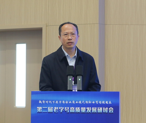 张亚在致辞中代表学校向拨冗莅临的各位领导、专家学者和企业家朋友们表示热烈的欢迎,向长期关心支持学校发展的各界同仁致以最诚挚的感谢。他指出,首届老字号高质量发展研讨会以来,学校积极与老字号企业合作,取得丰硕成果。在科研创新层面,学校整合校内外多学科资源,形成了一系列初步成果,组织专家团队编撰了老字号专著;管理学院、经济学院等多个团队成功申报多项省部级以上的老字号相关重点研究课题,学校还参与了商务部《中华老字号年度发展报告》的改版与编撰工作,出席第四届中华老字号创新发展大会并作经验分享;各学院积极为老字号企业提供专业的咨询服务,将理论知识转化为解决实际问题的方案。在人才培养层面,学校构建立体式、沉浸式的育人体系。连续三年组织“大学生走进老字号”主题社会实践活动,足迹遍布全国上百家老字号企业;邀请老字号传承人进校园,为学生讲授“老字号传承人大讲堂”;举办“带老字号回家过年”老字号嘉年华活动,让师生在选购年货的同时,感受非遗技艺与企业文化的魅力;积极挖掘研究老字号里的思政元素,编辑了《基业长青的红色基因--老字号中的党史党建故事》,同时,将思政课堂搬进老字号企业,从力生制药的匠心中品守正创新,从长芦汉沽的盐粒上读奋斗史诗等。学校还将老字号的故事搬上了舞台,原创话剧《商道之范旭东》即将首演。同时,积极承办各类大学生老字号创新创意创业大赛,激发青年学子热爱并投身老字号事业的热情。