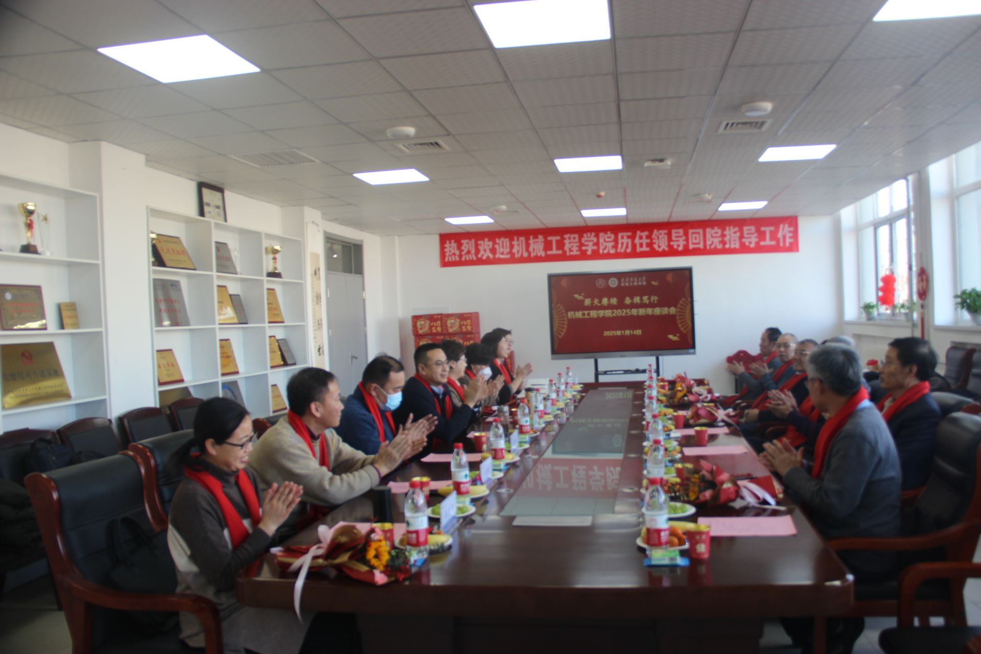 1月14日,机械工程学院在1号实验楼502会议室举办“薪火赓续 奋楫笃行”新年座谈会。校党委副书记王立云出席,学院历任领导李树丽、张建东、申江、臧润清、计宏伟、刘振强、田海荣、杨传民、郭宪民、张晨阳、刘斌等受邀参会,与学院领导班子成员和教师代表座谈交流。机械工程学院主要负责同志主持会议。