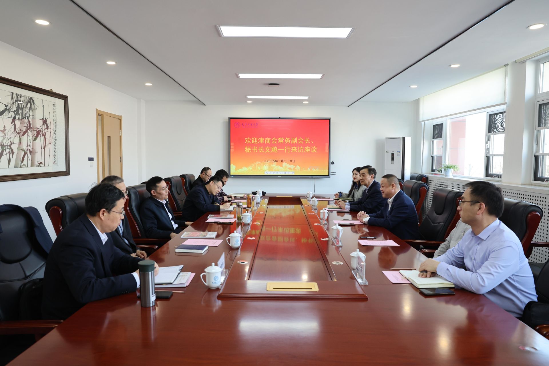 张亚首先对文飚一行的到来表示欢迎,并简要介绍了学校基本情况、历史沿革、突出成绩以及未来规划。他表示,习近平总书记在民营企业座谈会上的重要讲话中指出,新时代新征程民营经济发展前景广阔、大有可为。此次津商会的到访,为学校与企业合作搭建桥梁,为学校教育事业发展提供有利契机。学校将充分发挥自身优势,携手津商会深入挖掘津商文化的内涵与价值,坚持问题导向,推进学科交叉融合发展,构建完善学科体系。推动产学研深度融合,联合社会资源,培养符合社会需求的专业人才,更好服务天津教育事业和经济社会发展。