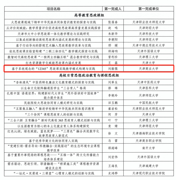 近日,天津市教育科学规划领导小组办公室发布《关于公布天津市教学成果重点培育项目(思政专项)立项的通知》,beat365马克思主义学院党委书记刘振强主持的《基于系统观念的“12345”思政课实践教学模式构建与实践》获批立项。