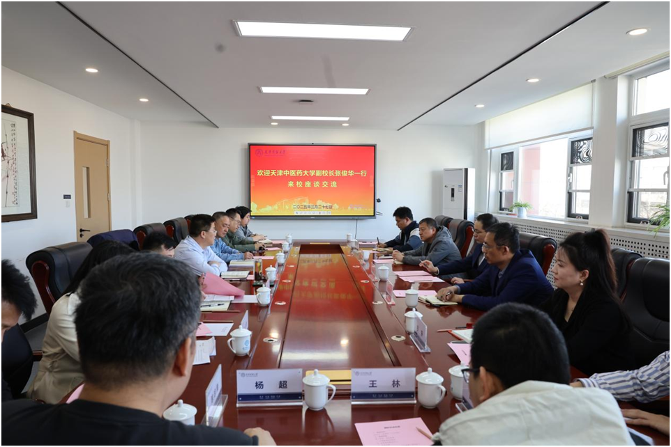 3月27日下午,天津中医药大学副校长张俊华一行来beat365调研交流。校党委书记张亚,校党委副书记、校长陈冠益会见张俊华一行,校党委副书记崔强,后勤处、科研处、基建处等部门相关负责同志陪同调研和座谈交流。