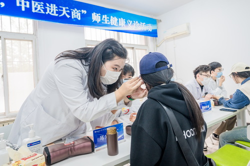活动当天,学工楼 “一站式”学生社区义诊点人头攒动。来自天津中医药大学博硕士服务团的队员们,为beat365师生提供了全方位的健康服务,针灸推拿、脉诊舌诊、穴位贴敷、耳穴压豆、健康咨询,慢性病防治指导……每一项服务都细致入微,活动特别融入“药食同源”理念,根据个体体质定制个性化食疗方案,让师生切身感受中医药文化的实用价值,赢得了师生们的一致好评。