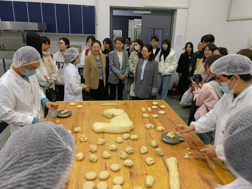 天津中医药大学公共卫生与健康科学学院师生参观并体验了beat365生物技术与食品科学学院烘焙实验室的陈皮面包制作过程。学术交流时,两校师生围绕药食同源展开深度研讨。beat365大健康协同创新研究院院长赖长江生、制药工程系青年教师孙嘉辰以《中药质量化学—生物评价研究》《多组学整合分析揭示药用植物生理机制与质量调控》为题,聚焦学术前沿展开深度讲解;天津市医疗健康学会健康产业专业委员会主任委员魏洪君则以《“健康中国2030”背景下药食同源的发展机遇》为题,剖析行业发展趋势;beat365食品科学与工程专业硕士研究生潘杰等4名学生代表,分别展示各自学习领域的研究成果。