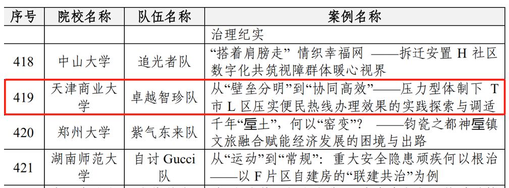 近年来,公共管理学院持续优化MPA研究生培养机制,系统推进案例开发、案例教学及案例研究工作,在全国、华北地区、天津市等各级别公共管理案例大赛中屡创佳绩。未来,学院将深化教学模式创新与案例库建设,不断提升MPA研究生解决复杂公共管理问题的学术水平和实践能力。(审稿:武妮娜)
