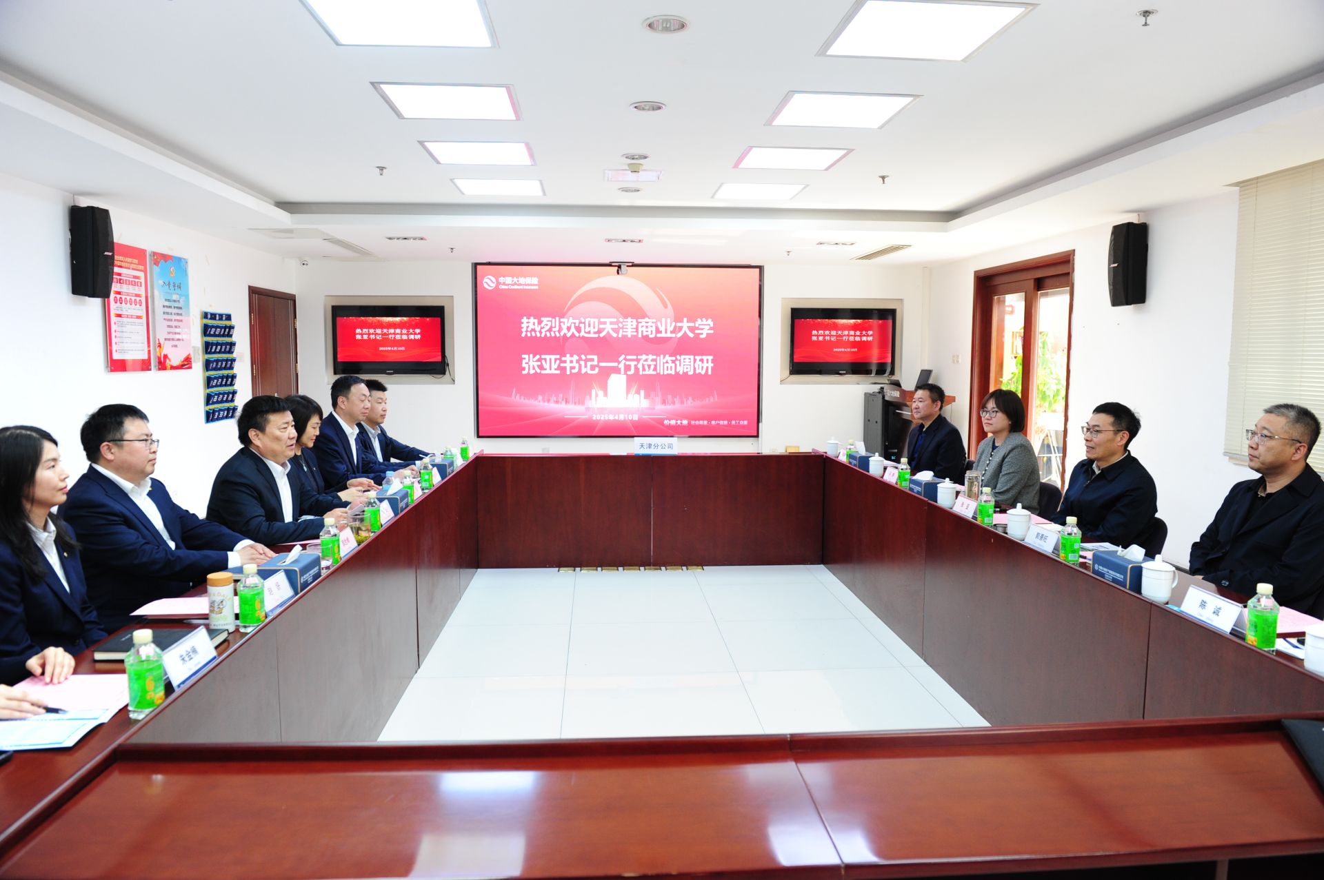 张亚代表学校对中国大地财产保险股份有限公司天津分公司的热情接待、提供的招聘岗位资源以及长期以来对学校人才培养的关心帮助表示衷心感谢,并对公司取得的成就表示赞赏。他介绍了学校45年的历史沿革、办学特色、学科科研优势、人才培养方向以及老字号协同创新中心建设情况,并对校企双方开展深度合作、多元融合的发展前景进行了展望,希望双方能够进一步拓宽合作领域,深化合作内容,实现互利共赢、共同发展。