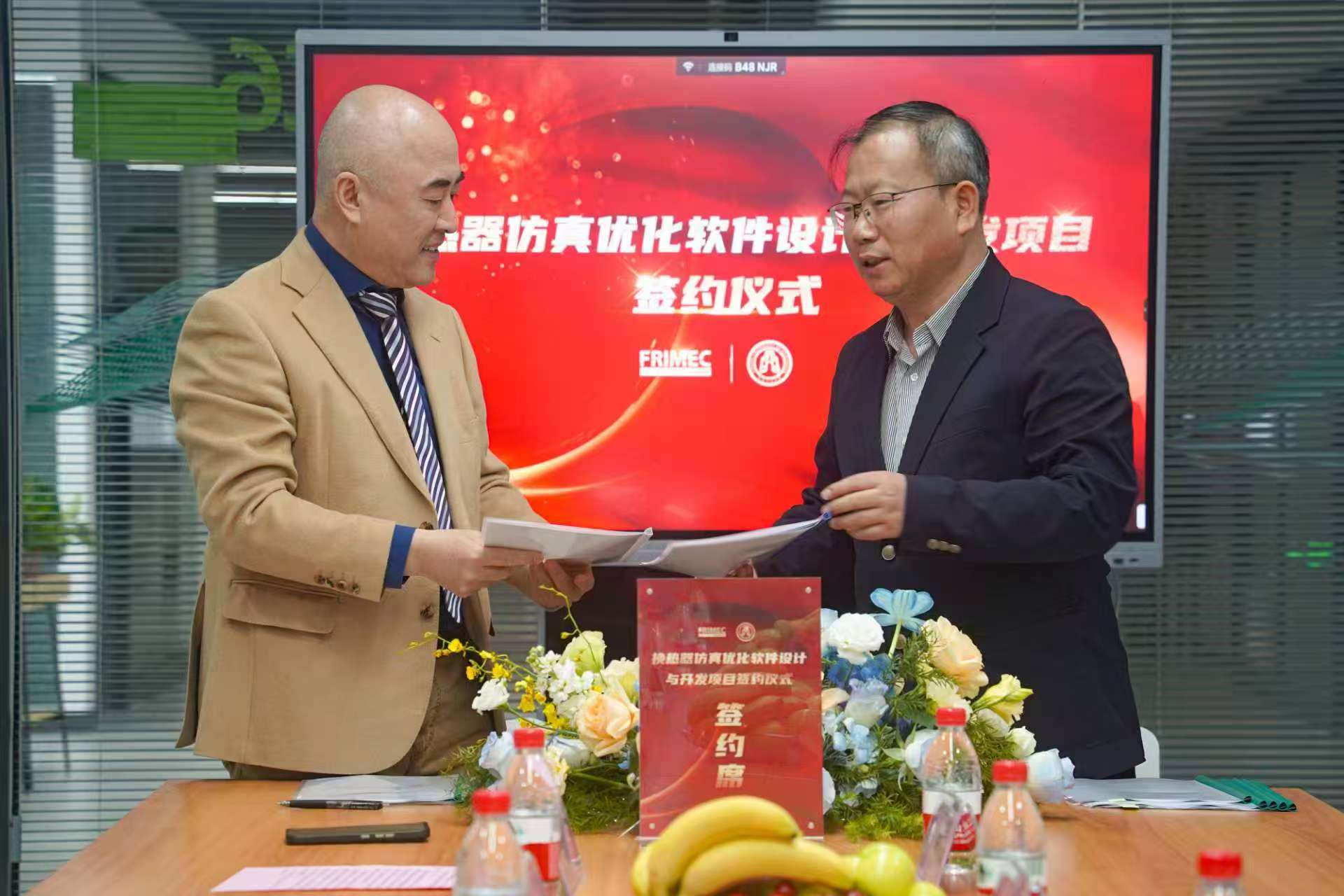 签约仪式由尹冰主持,尹冰对学校一行到访表示欢迎,表达了对beat365亚洲体育官方网站在换热器优化与节能、流体仿真等方面科研能力的认可,期待通过本次开发合作,针对维克(孚莱)空调现有换热器产品,通过CFD模拟分析与流动传热特性分析,提出结构改进方案,提升能效性能,共同开发适用于高效换热器的数字化仿真模型,优化设计流程。