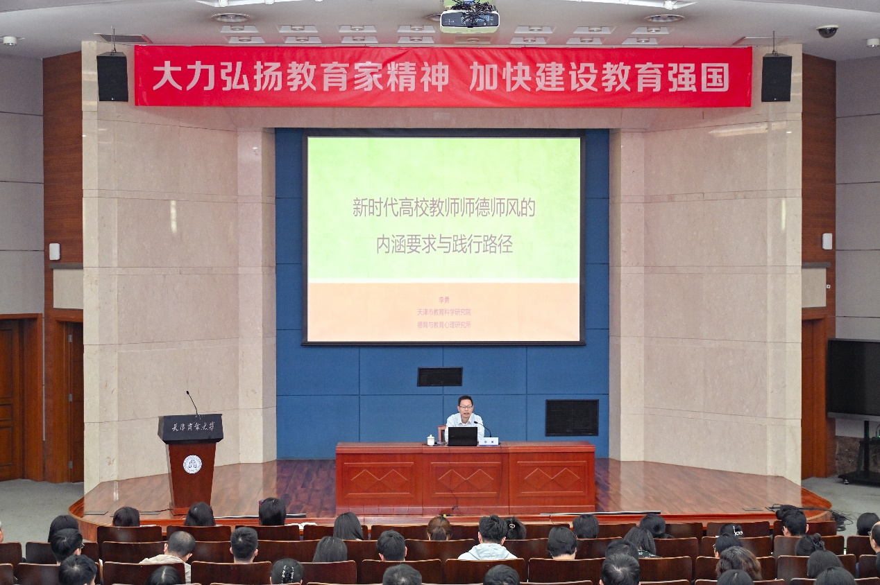 在强化师德师风建设方面,邀请天津市教育科学研究院德育与教育心理研究所所长李勇作题为“新时代高校教师师德师风的内涵要求与践行路径”的主题报告。