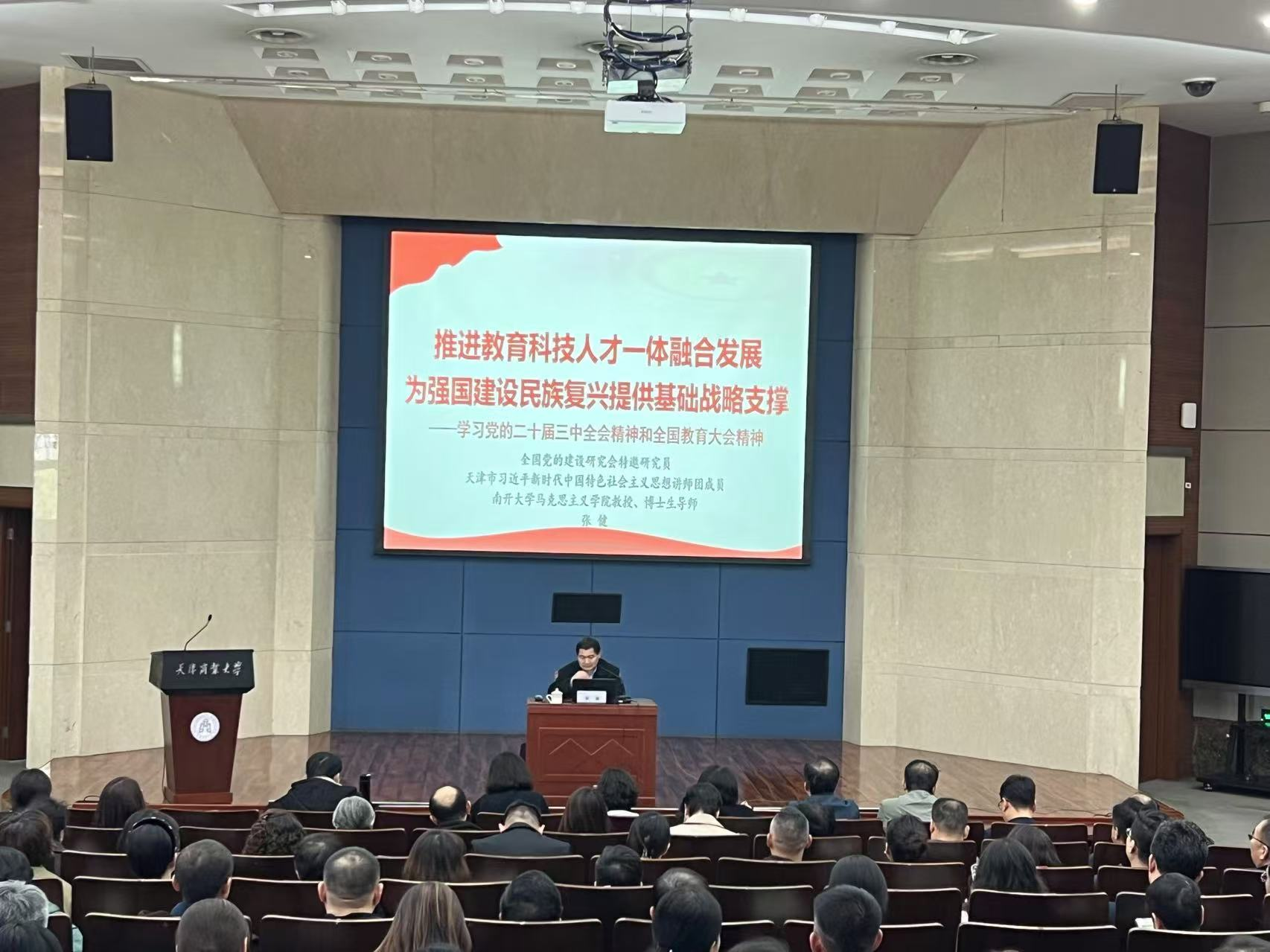 在党的创新理论阐释方面,邀请南开大学张健教授作题为“推进教育科技人才一体融合发展 为强国建设民族复兴提供基础战略支撑”的专题讲座。