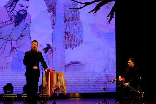 王鸿亮、孙恺承两位老师以精湛的技艺、采用单弦的艺术表演形式讲述了《鞭打芦花》这一二十四孝之一的传统民间故事。