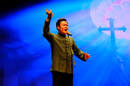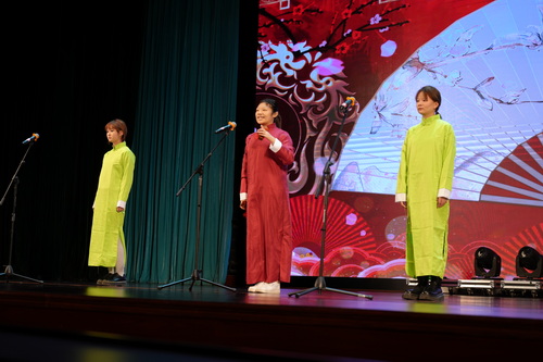 演出在天津市曲艺团主持人姜维红老师充满感染力的声音中拉开序幕,校星海艺术团相声分团以一曲清脆的快板《我为中华唱赞歌》活跃了现场氛围。