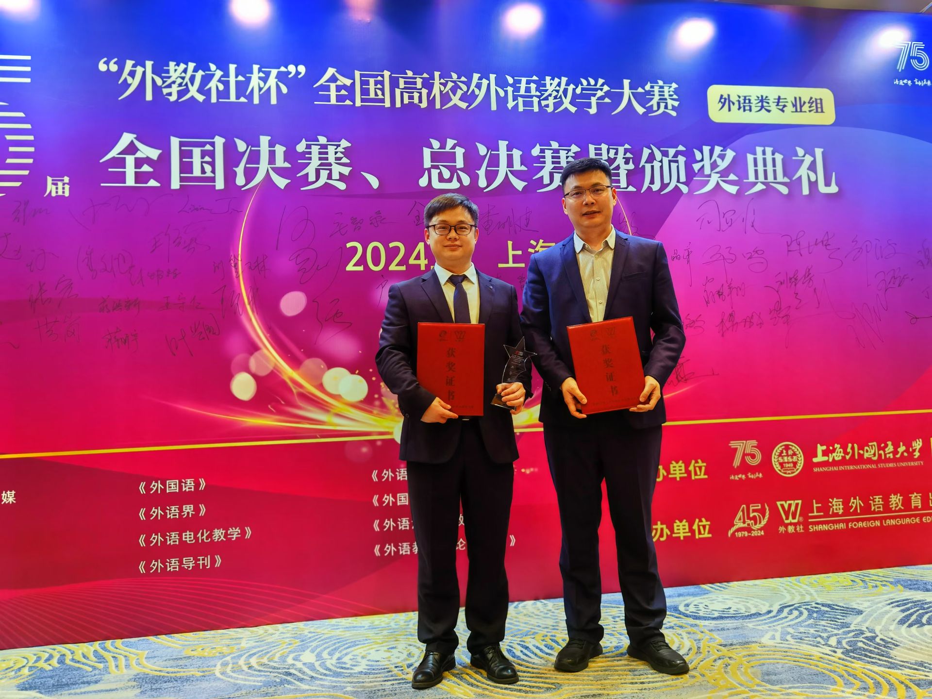 12月5日至8日,第十五届“外教社杯”全国高校外语教学大赛全国决赛、总决赛暨颁奖典礼在上海举行。beat365外国语学院教师李智勇最终获商务英语专业组全国二等奖,学校获商务英语专业组“教学设计奖”(团队奖)三等奖。