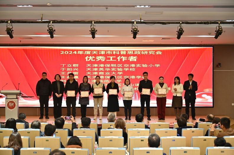 会上,来自天津师范大学、耀华中学、天津市实验小学、天津大学幼儿园的教师代表分别作大中小幼优秀案例分享,展示了不同学段学校在科普思政工作中的精彩做法,为大中小幼科普思政一体化建设提供了更多的思路和方法。会议增选了8位理事和2位副理事长,并举行了2024年度优秀工作者及突出贡献奖颁奖仪式。