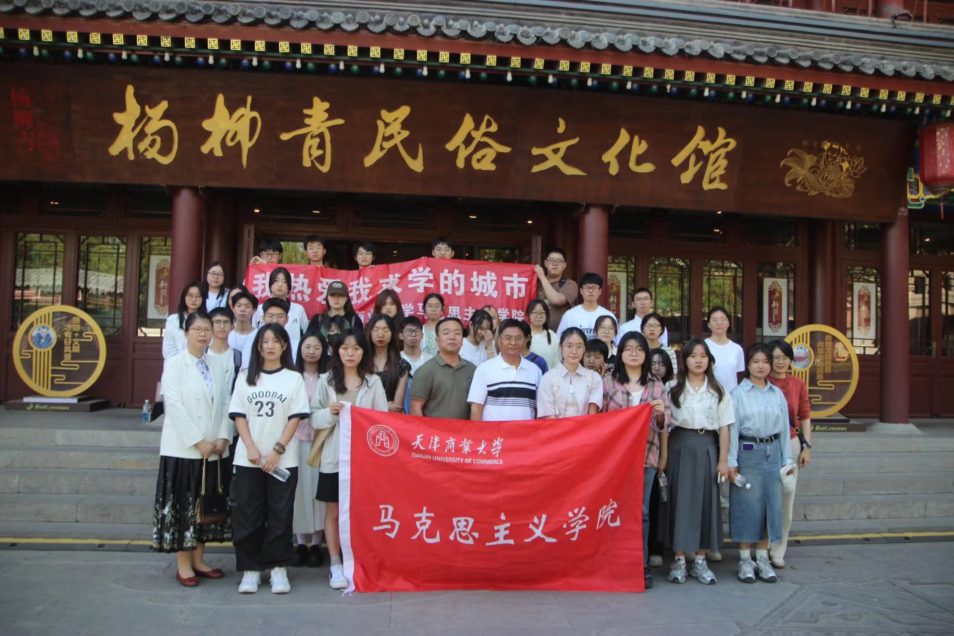 学校党委坚持加强对马克思主义学院的领导,结合学校办学历史、学科特点,在天津市高校重点马院建设成果基础上,推动凝练学院建设特色。学校依托商务部老字号协同创新中心,落实中央办公厅、国务院办公厅联合印发的《关于深化新时代学校思想政治理论课改革创新的若干意见》中“开门办思政课”“完善思政课实践教学机制”的要求,以新时代的历史性成就和变革为基础,以红色文化培根铸魂、传承红色基因,以商业文化立德润心、强化社会责任感,开设“老字号里的思政课”,深入开展“富国兴商”思政课实践教学,把鲜活的实践和理论教学有机结合起来,帮助学生树立富国裕民、兴邦济世的理想信念和使命担当,构建起具有商科院校人才培养特色的“12345”思政课实践教学模式,并以此为基础申报获批天津市高校特色马克思主义学院建设单位。