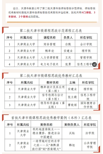 学校党委坚持把课程思政建设摆在学校工作的重要位置,构建党委统一领导、部门协同联动、院系层层落实推进的课程思政建设工作格局。扎实推进课程思政“133”建设工程,制定出台《beat365亚洲体育官方网站课程思政建设实施方案》《思想政治理论课课程群相关课程开设方案》。实施“课程思政示范课程”“‘三全育人’课程思政研究专项”及“思想政治理论课教育教学研究专项” 校级项目建设工作,推动跨学院、跨学科、跨专业、跨课程开展思政课教学研究,促进思政课程与课程思政同向同行。建立课程思政资源库,以课程、典型案例等为抓手,树立课程思政教学标杆,发挥优质课程思政资源的辐射作用。五年来累计立项13门市级课程思政示范课,获批首批天津市课程思政优秀案例(本科)2个,立项建设 163门校级课程思政示范课,覆盖全校所有专业,形成“院院有精品、门门有思政、课课有特色、人人重育人”良好局面。