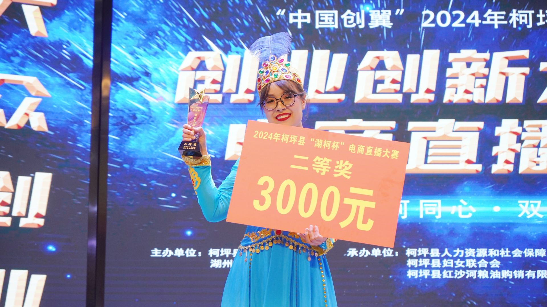 麦尔哈巴·穆合塔尔参加柯坪县“湖柯杯”电商直播大赛并获二等奖