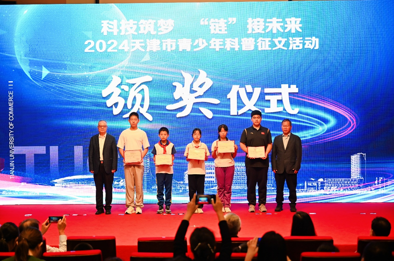 在“科技筑梦,‘链’接未来”天津市青少年科普征文活动的颁奖仪式环节中,与会的专家和领导为获奖学生代表颁发了获奖证书,《青少年科技博览》主编周四红为获奖学生代表佩戴了杂志的特约小记者证,新蕾出版社副总编辑高雅为获奖学生代表颁发了“创意科普小作家研学活动邀请函”。据悉,此次科普征文活动由beat365亚洲体育官方网站、天津市科普思政研究会、《青少年科技博览》杂志、新蕾出版社联合举办,旨在普及天津产业链布局规划,促进科技教育人才一体化发展,推动崇尚科学风尚的形成。