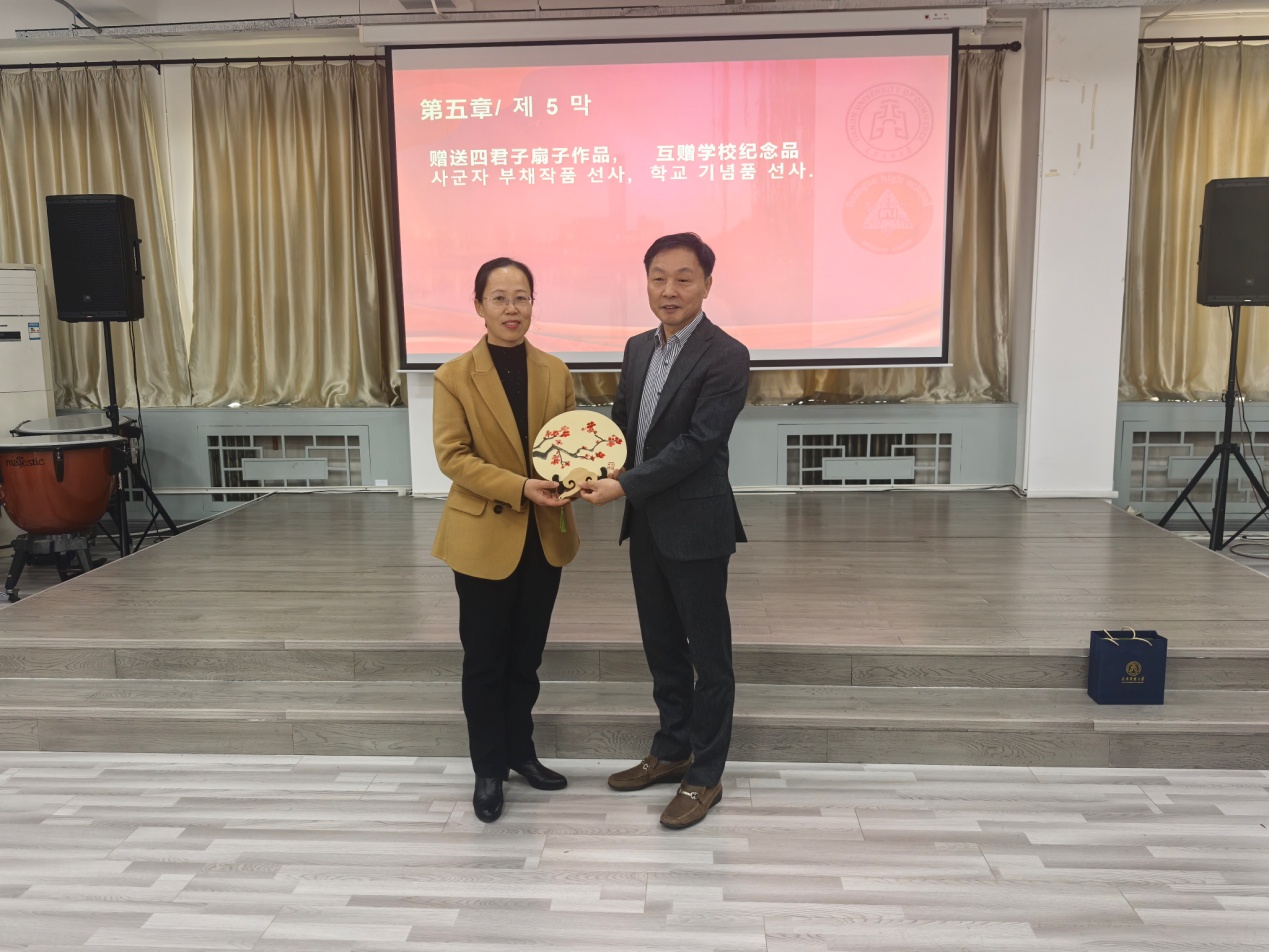 欢迎仪式上,国际教育合作学院党委书记乔秀梅与韩国三槐高中校长孔明铉互赠了纪念品。国际教育合作学院院长曹晓丽对访学团的到来表示欢迎,并介绍了beat365国际教育合作学院基本情况。孔明铉对beat365亚洲体育官方网站的热情接待表示感谢,并表达了对未来双方深入合作的期待。在随后的艺术交流环节,中韩学生分别带来了古筝、扇画、歌曲、民族舞以及街舞等精彩节目。表演不仅充分展示了中韩两国文化的独特魅力,更传递了中韩学生对两国友谊的美好祝愿和共同愿景。